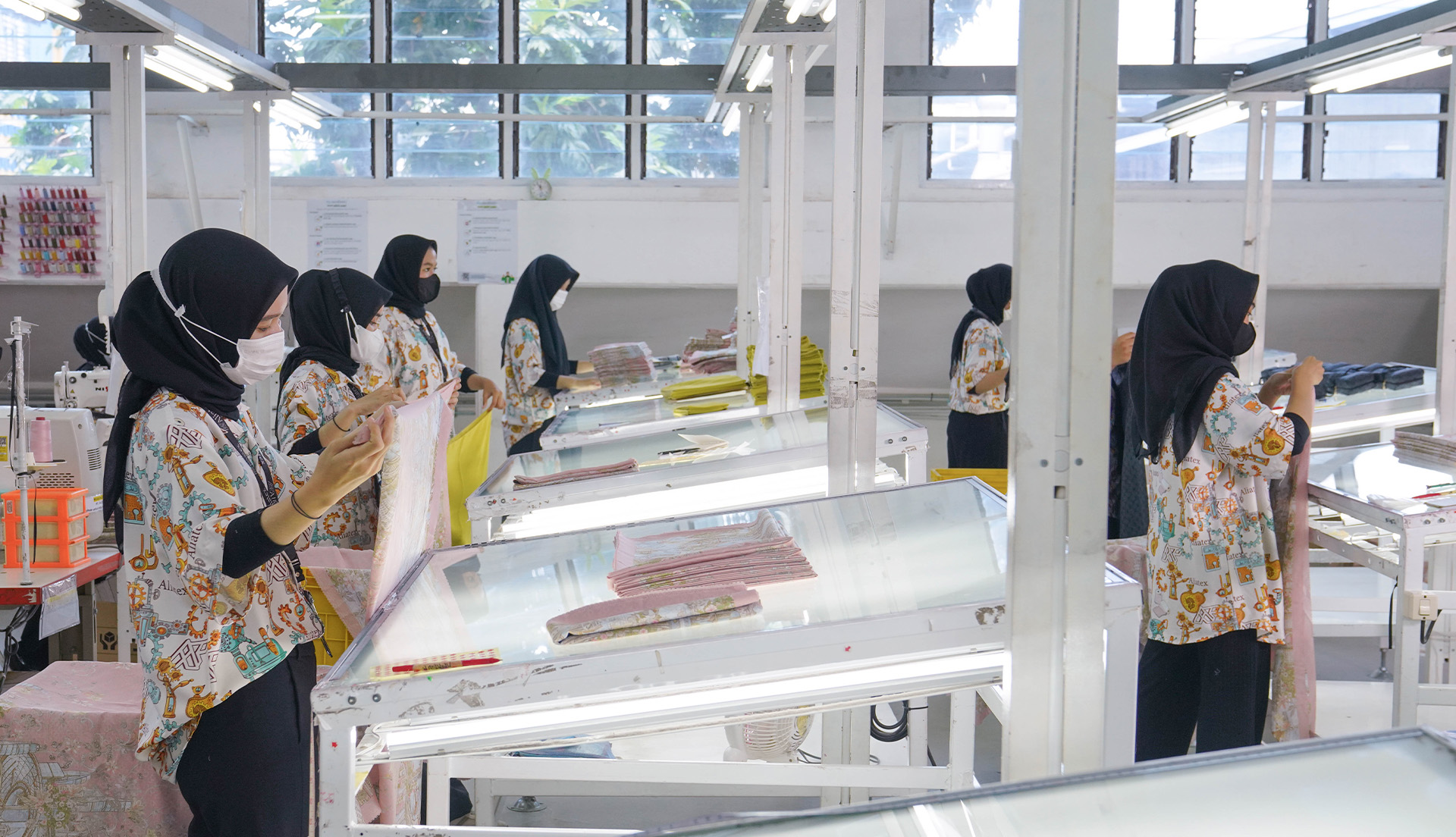 Tahap akhir yang tidak boleh diabaikan adalah finishing. Hijab premium membutuhkan sentuhan akhir yang rapi dan eksklusif. Jahitan pinggiran harus halus, presisi, dan tidak mudah lepas.